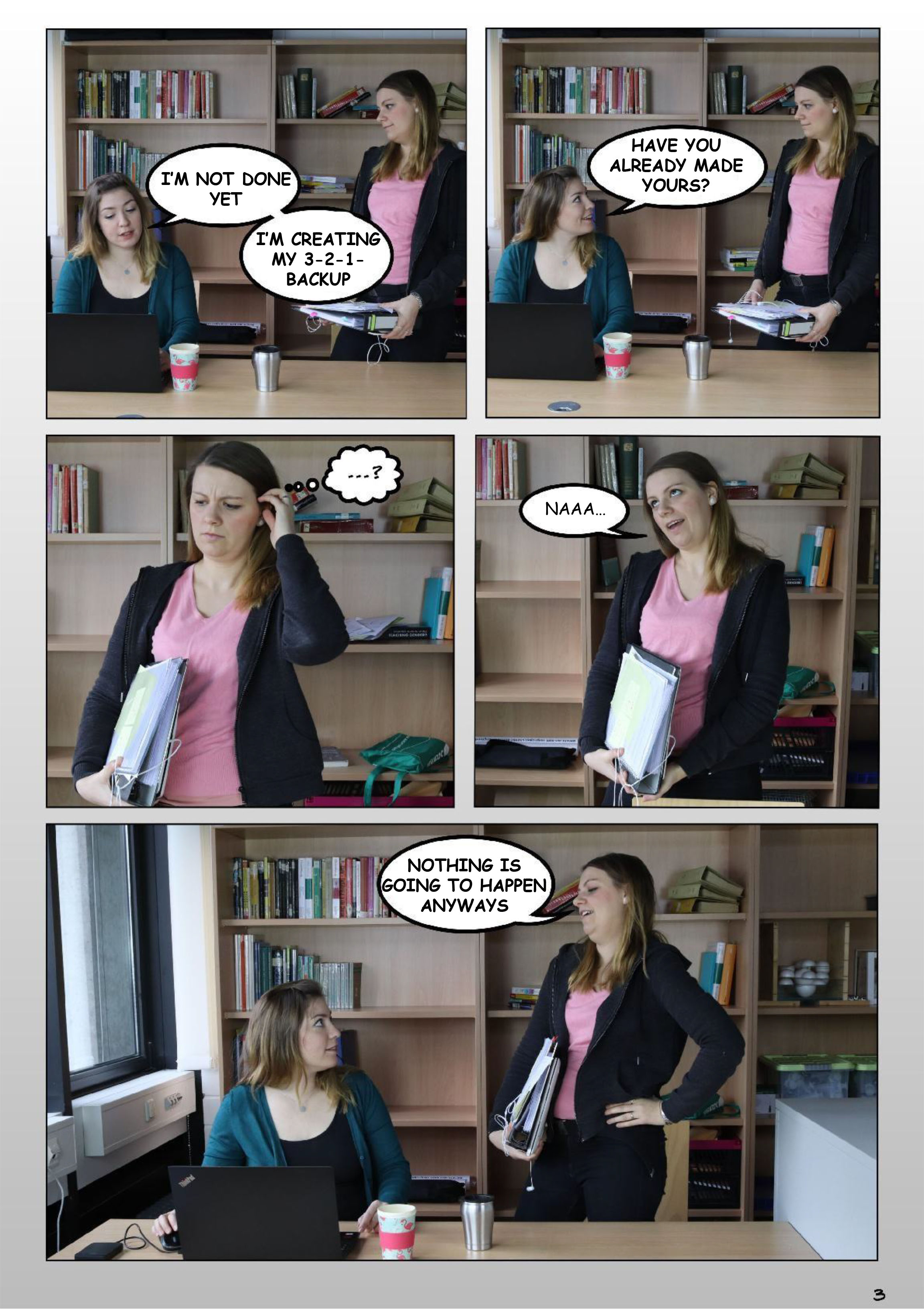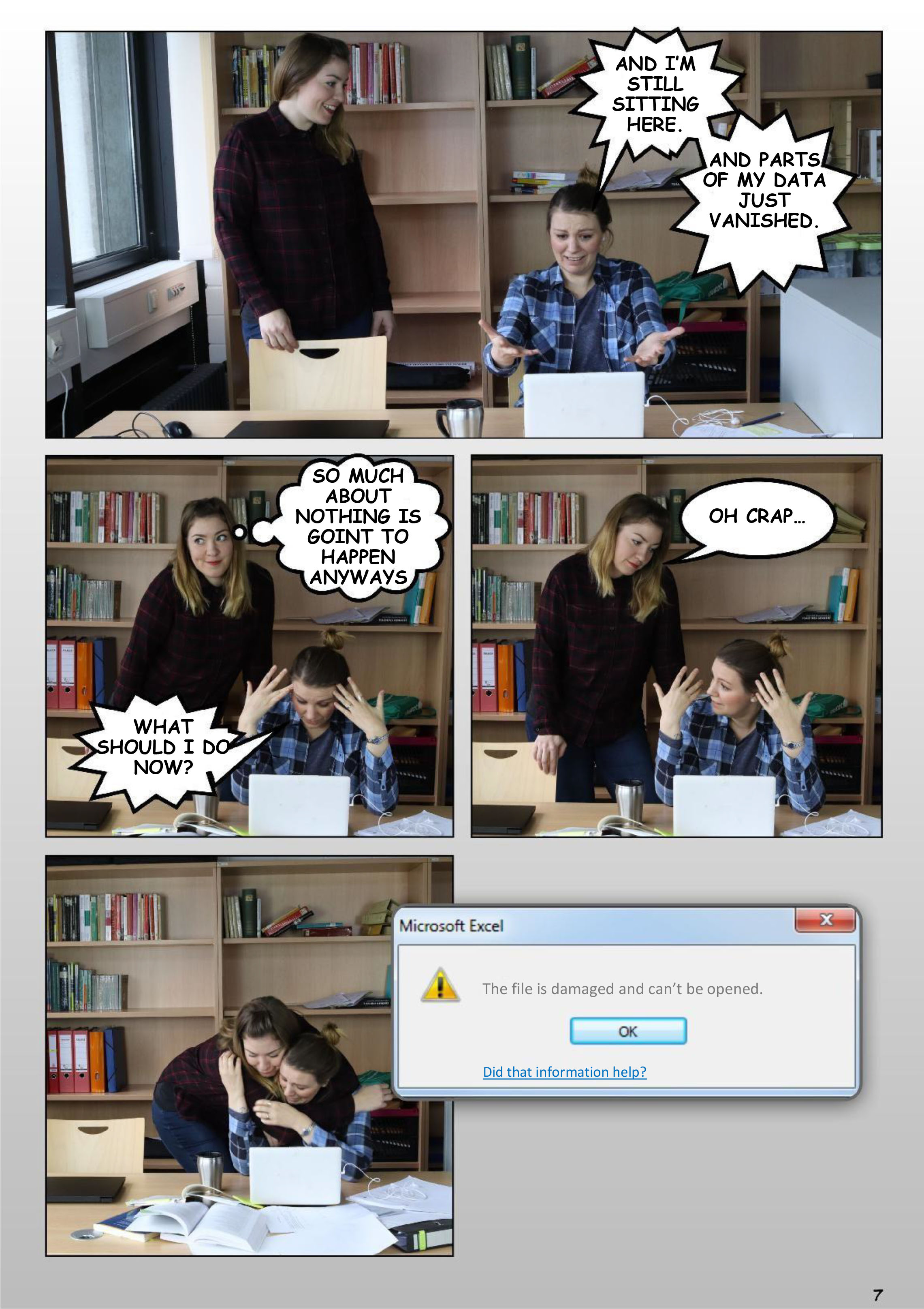 1.1: Stress, stress go away. Derivative version of: Stress lass nach – Eine Bildergeschichte zum Forschungsdatenmanagement. Created by Julia Werthmüller and Tatjana Jesserich, project FOKUS (Forschungsdatenkurse für Graduierte und Studierte), 2019. CC BY-SA 4.0 Funded by BMBF 2017-2019.