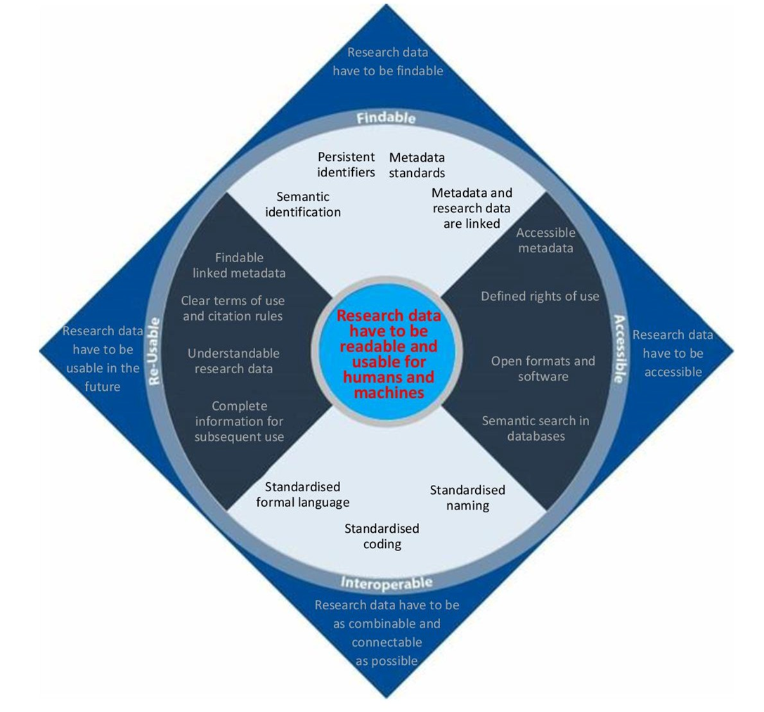 Wilkinson, M. D. et al [2016]: The FAIR Guiding Principles for Scientific Data Management and Stewardship. In Scientific Data, 3, article 160018. https://doi.org/10.1038/sdata.2016.18 The original article on the FAIR principles, which have become probably the most important tool in the field of research data management for assessing the goodness of research data. They are part of the absolute basic knowledge in the field of research data management. All major funders require projects to ensure that the data generated in these projects comply with the FAIR principles. The FAIR principles are also an important part of the guidelines of the DFG code mentioned above. If there is no time to read the article, the FAIR principles can also be found on the pages of GO FAIR.