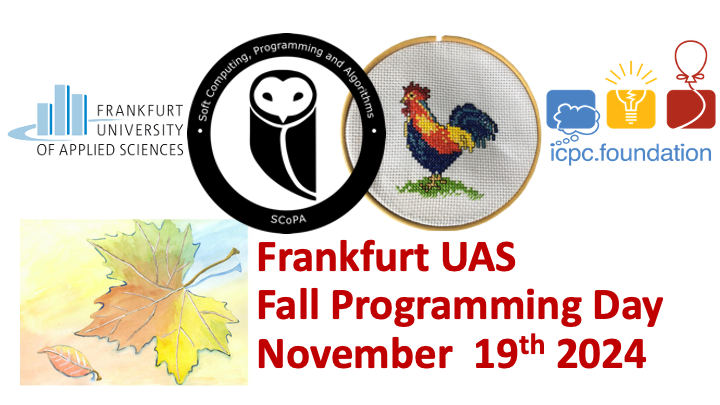 Teilnahme, Identifizierung und Vorbereitung der Programmierwettbewerben (z.B. GECCO CompetitionsFRA-UAS Programming DayGerman Collegiate Programming ContestGerman Winter ContestNorth-Western European Regional ContestCloudflight Coding Contest). Dazu gehören z.B. thematische Team-Meetings zu verschiedenen Themen wie Programmiersprachen, Algorithmen, Mathematik, Programmierwettbewerbe, Effizienz.