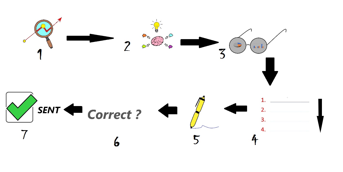 The diagram below illustrates the process of writing an essay. Typically the process consists of the following stages: 1. analysis; 2. brainstorm; 3. research; 4. planning; 5. writing; 6. editing; and 7. submission.